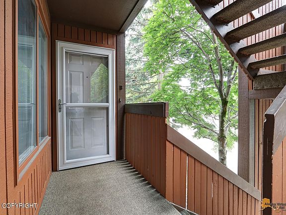 Move-in Ready, apartment-style condo. Unit has 2 bed, 2 full baths, and 1 car garage. Master bedroom with walk-in closet with a private bathroom. Washer and dryer in unit. Stainless appliances Wonderful wooded location near walking and biking trails on Campbell Creek Trail, a short distance to Taku Lake.