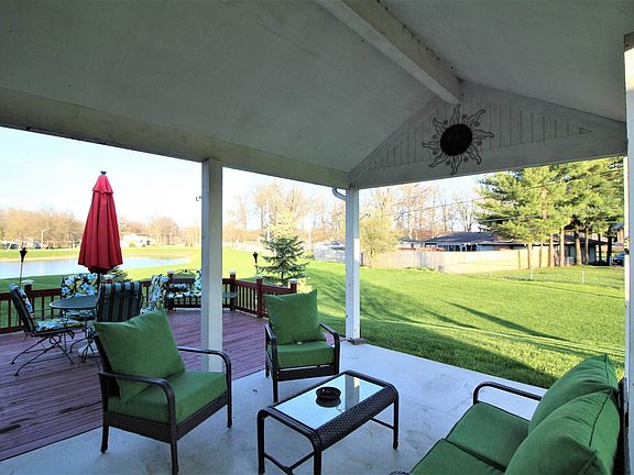 Roomy split bedroom Ranch with a View! Enjoy your summer evenings sitting on your deck or covered patio with a pond view! The great room features a gas log fireplace and built in surround sound. Enjoy your holidays in the eat in kitchen or the formal dining room. Master suite has a step in shower. Extra storage in the garage.