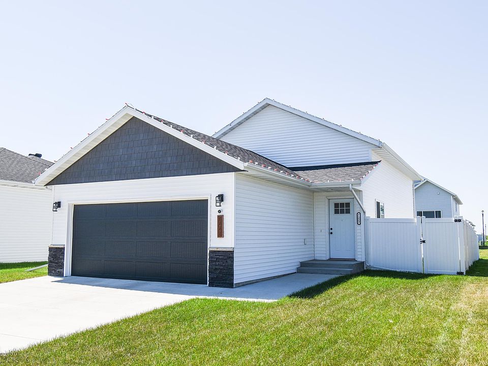 Welcome to this fantastic like-new home in South Fargo! This wonderful bi-level features 3 bedrooms, 2 bathrooms, 2 attached garage stalls, over 1800 square feet of living space, and a fully fenced yard. Upstairs you will love the open concept and large sliding patio door that lets in tons of natural light. The primary bedroom features a large walk-in closet and hollywood bathroom. Downstairs you will love the spacious family room in addition to laundry, 2 more bedrooms, and an additional bathroom. Outside you will enjoy the deck overlooking your fully fenced yard. This house really has it all, so call today before it's gone!