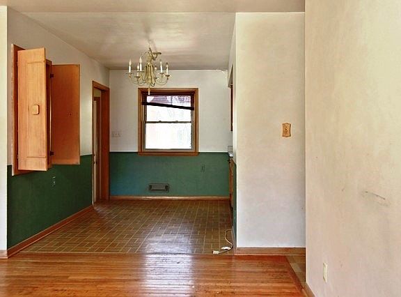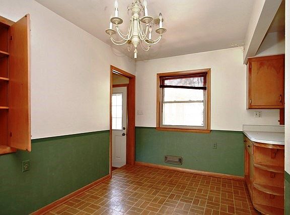 This Ranch style home has 3 bedrooms, 1 bathroom, an attached garage, and an unfinished basement.