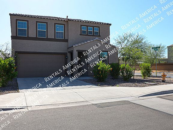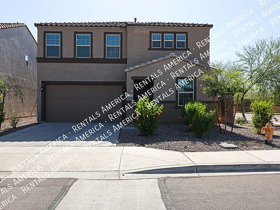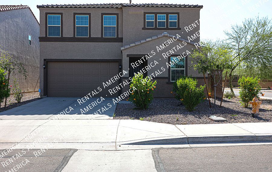 This stunning two-story home features an open concept floor plan! Great for entertaining and includes a spacious foyer and 9-ft. ceilings. A huge great room opens to a kitchen and dining space and offers access to an extended covered back patio. The kitchen includes 42-in. upper cabinets, granite countertops, and a single basin undermount sink. Stainless steel appliances included. Mother-in-law suite downstairs with full bathroom. Upstairs you will find a large loft and 2 other bedrooms, as well as the master suite. Master suite comes with a walk-in closet. Master bath has shower and tub and dual-sink vanity. Spacious laundry room upstairs with Washer and Dryer included. This community offers several playgrounds and walking trails. Close to A-rated schools, State Farm Stadium, Westgate, Tanger Mall, Commuter Highways and so much more! Available NOW