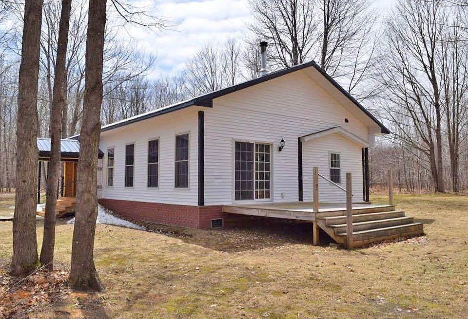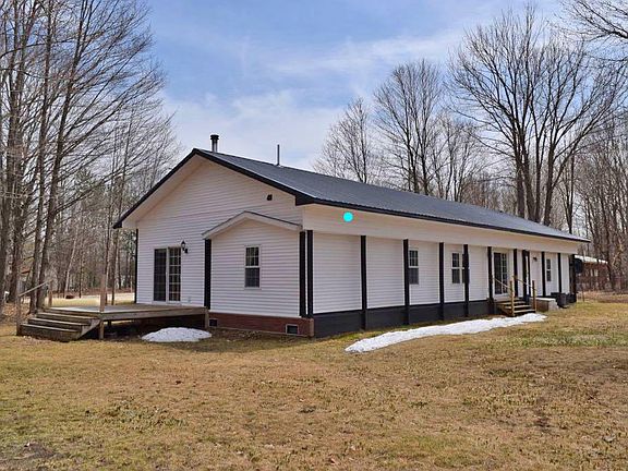 Great place for a retreat. Wonderful family room with 10' ceilings, wood burning stove, and door wall. Kitchen, living room and dining room feature the open look. Three door walls. Engineered laminate floors in living, dining and family room. Metal roof on the house and garage. Covered front entrance porch. 12' x 12' deck off family room door wall. Newer windows in the home. Large 30' x 40' insulated garage with 18' x 10' and 10' x 10' overhead doors and electric subpanel. Furnace and central air replaced March 2017. Water heater replaced in July 2017. Extra wide concrete driveway. Home sits on two lots that are adjacent to state land. LON Amenities - see additional remarks.