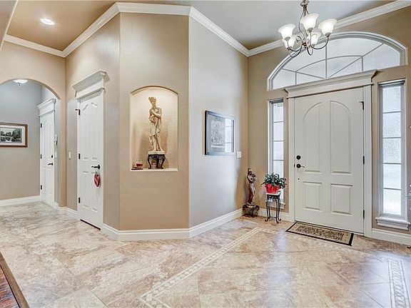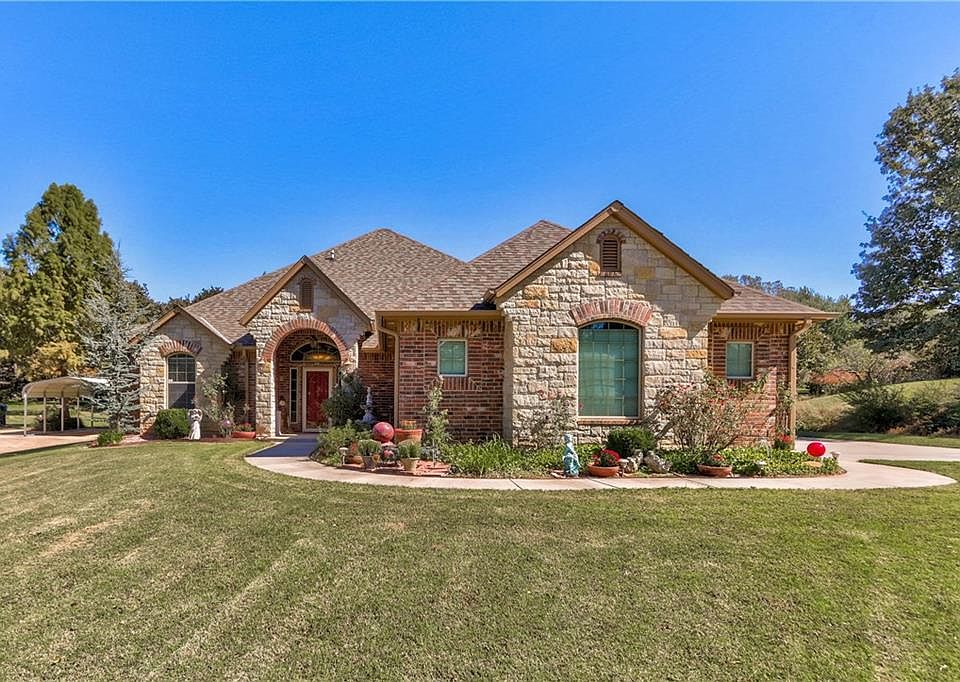 Custom built home in sought after Carl Albert School District!! This home has a huge living area, with a stone and tile gas fireplace, tray ceilings w/lighting, engineered hard wood floors, large kitchen with bar and center island, tile floors, built in appliances, five burner gas stove, granite counter tops, under/over cabinet lighting, walk-in pantry, coffee bar, media room and office space with carpet, that opens to the back patio, safe room, Over sized Master bedroom with tray ceilings, inside utility room that connects to the master closet that features built-in shoe racks with pull down clothes rack, master bath has double vanity, separate tub and shower, water softener, rinnai hot water heater, outdoor cameras, sprinkler system, exterior wall foam insulation, fold out windows, covered patio, outdoor ceiling fan and speakers, guttering, smoke detectors, concrete drive, beautiful trees all on a 1 acre lot!!! CALL TODAY TO SCHEDULE YOUR SHOWING