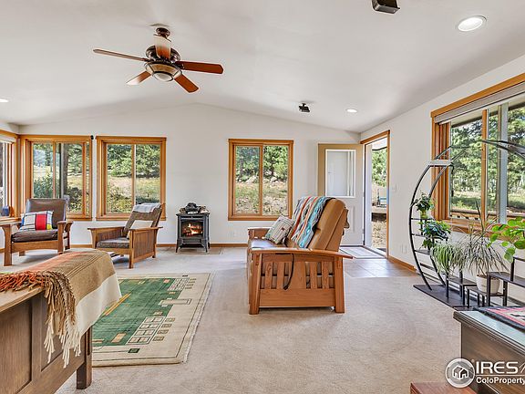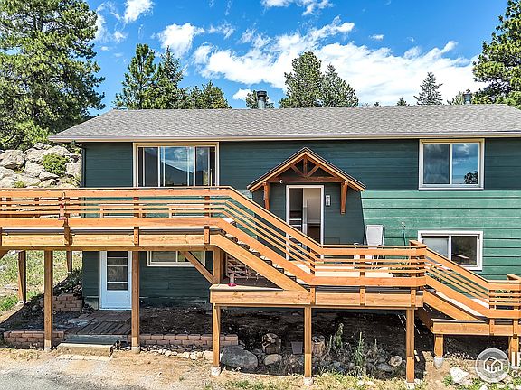 Move-in ready home on 10 usable acres! This home was just remodeled and features a beautiful kitchen with exotic wood cabinets, a breakfast bar, and a separate pantry area. The living room has many large windows and is bright and sunny. Nice views from the dining room. Relax on the deck and enjoy views of your private meadow, Mt. Thorodin, and Twin Sisters. The home is in a private location away from the road and adjacent to a vast conservation parcel. Septic system needs to be replaced. 22 minutes to Boulder.