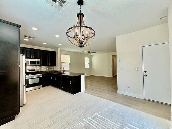 NO COST SOLAR POWER SYSTEM in this stunning 3-bedroom rental home, nestled in a gated community within the Providence Master Plan, has been fully remodeled and is ready for you to move in. The home boasts brand new flooring throughout, fresh paint, and beautifully updated bathrooms. The kitchen and living areas are bright and modern, making it the perfect space to entertain or relax. The home is located in a community that offers fantastic amenities, including a park with a large grassy area and a playground, ideal for outdoor activities. Plus, the home comes with all appliances, so you can settle in with ease. A major highlight is the fully paid-off solar system, which will significantly reduce your energy costs, providing you with substantial savings. Additionally, the garage is prewired for an EV charger, making it convenient for electric vehicle owners.*TOTAL MONTHLY PERIODIC RENT IS $2050 which includes trash, sewer and solar power*