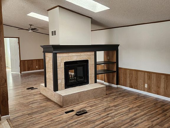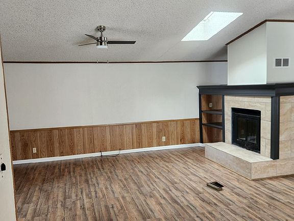 LAND OWNED!! Home recently updated in a Great location, wonderful home as 2 living areas with a double fireplace, nice open island kitchen and separate dining area, spacious master bedroom plus skylights brings in natural lighting. 3 bedrooms, 2 baths. New flooring, fresh paint Owner will consider owner financing. HOA $200.00 monthly which covers, community pool, water and the grounds. The land is owned on this property, not a land lease. Close to shopping, parks and schools. OWNER FINANCING AVALIBLE.
