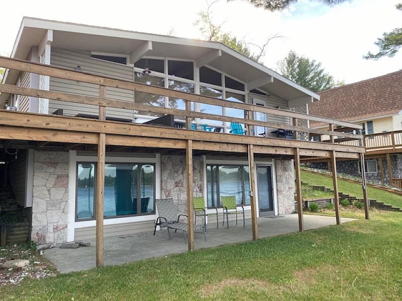 Perfect up North getaway! Located on the North end of Van Etten Lake, this 3-bedroom, 2-bath year round lake home is what you have been looking for. The home features a fully finished walkout lower level (additional 896 sf of living space) and large covered concrete patio area. Above you will find a mammoth lakeside deck perfect for outdoor entertainment and spectacular views of the lake. The beautifully landscaped yard is easily watered with an in ground sprinkler system; outdoor electric is throughout the yard including the dock. Inside this mostly furnished house, you will see knotty pine throughout the main level with the living area featuring 4 large lakeside windows for those spectacular views of wildlife and water. The spacious garage has plenty of room for the water toys and is equipped with a 220 power outlet for those heavy duty projects. Throw in the aluminum dock and the boat lift and you can almost feel your tension melting away. If this sounds like the life, make your appointment today to see this charmer before it gets away! Master Bed 16x15, Bed 2 - 12x8, Bed 3 - 11x11, Kitchen 9x13, Living/dining 22.5x12, Family room 26x17.5