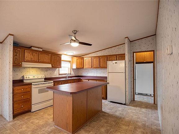 WELL MAINTAINED MANUFACTURED HOME FEATURING LARGE LIVING ROOM WITH NEWER LAMINATE FLOORS, EAT IN KITCHEN WITH LARGE CENTER ISLAND AND LOTS OF CABINETS. SOME OF THE CABINEST HAVE PULL OUT SHELVES AND 2 LARGE PANTRY CUPBOARDS IN THE KITCHEN. APPLIANCES INCLUDED BUT NOT WARRANTED. UPRIGHT FREEZED ALSO INCLUDED. LAUNDRY ROOM OFF KITCHEN AREA FOR CONVENIENCE. SLIDING GLASS DOORS OPEN TO LARGE BACK COVERED DECK FOR RELAXING. KITCHEN IS OPEN TO LARGE FAMILY ROOM AREA. MASTER BEDROOM FEATURES LARGE WALK IN CLOSET & NEWER LAMINATE FLOORING, MASTER BATH WITH GARDEN TUB, WALK IN SHOWER, LOTS OF STORAGE. DEN OFF FAMILY ROOM. 2 MORE BEDROOMS ALSO WITH WALK IN CLOSETS. ALSO FRONT DECK.