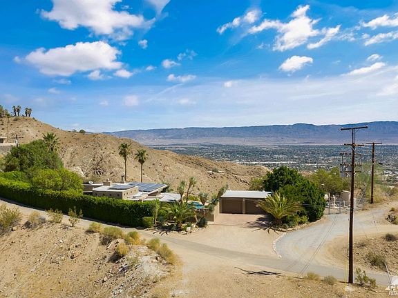 Situated on 5.06 Acres on South Palm Desert's highly sought after hillside, this private location offers some of the BEST surrounding Mountain and Down Valley Vista Views, yet minutes from Downtown, Golf and Tennis and multiple hiking trails. This gorgeous and eclectic 2-bedroom, 2-bath Owned Solar home has been dialed-in, creating the ultimate private desert lifestyle retreat. Both bedroom suites are spacious and offer beautiful views. Floor-plan offers open great-room living and dining each with fireplace and direct pool-patio access. West side of the property offers a good size lawn for for your kids, grandchildren, dogs or lawn sports.