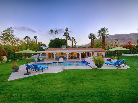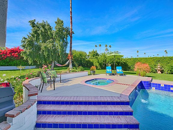 FULLY FURNISHED. Look no further! You have found one of the most private retreats in Coachella Valley on a manicured 1/2 acre lot surrounded by mature plantings. The home has been beautifully updated and furnished with idyllic views to the outside. Find yourself never wanting to leave. Enormous covered patio, optional heated Saltwater pool, jetted hot tub, Weber gas BBQ, fire pit, inviting hammock, and grassy lawn perfect for a game of Bocce ball all enjoyed in welcomed privacy!