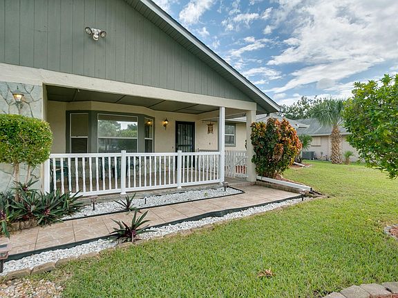 Conveniently located in Central Brevard community of Port St. John. Located near US 1 and I 95 and 30 minutes to the beaches. Walk up to lovely front porch, enter to open floor plan. Large living area with fireplace in the corner, kitchen with all appliances approx 3 years old, dining room, AC 2019, large master bedroom with walk in closet. Master bath has walk in shower. Other 2 bedrooms good size. Nice screened porch overlooks large back yard.