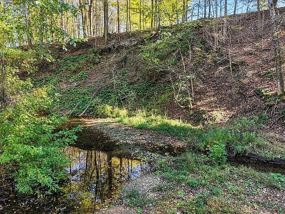 Build your dream home on this stunning 5 acre parcel, just a short commute from Columbus and surrounding areas. Nestled in nature, a natural berm along the road frontage ensures exceptional privacy, with the option to add a gate for ultimate security. Perched above a year-round creek, the property boasts breathtaking cliffside views, perfect for a custom home and deck enveloped by a mature hardwood canopy. Even in peak drought, the creek flows strong, adding year-round beauty and tranquility. A majestic 200+ year-old American sycamore anchors the eastern edge near the creek, a stunning focal point for your future homestead. Enjoy wild raspberries and blackberries in spring, and stay cool under the established canopy on hot summer days.Outdoor enthusiasts will love the proximity to the Heart of Ohio Trail, directly across the road, ideal for hiking or biking. A pre-existing gravel pad, once home to a container, offers a ready-made spot for RV parking, a boat, or a temporary base during construction. Wildlife lovers will appreciate abundant deer activity, with fresh buck scrapes and trail cam evidence of thriving game. This property is a rare blend of seclusion, natural beauty, and recreational potential—perfect for crafting your private retreat, all within easy reach of Columbus!