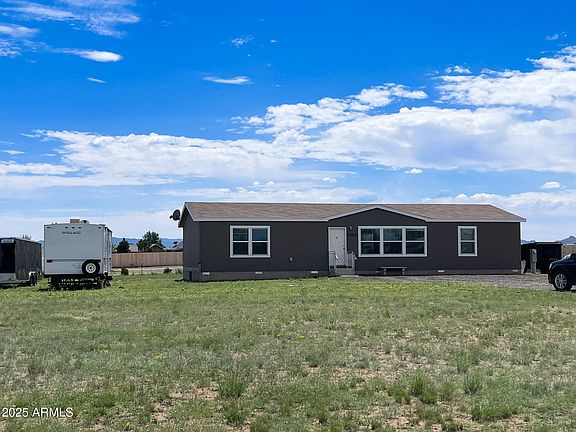 Welcome to 7225 E Trottin Down Road in the peaceful Poquito Valley of Prescott Valley of Prescott Valley. Built in 2019 by Cavco, this charming home offers the perfect blend of modern convenience and country living. With 1,634 square feet, this single level layout includes three spacious bedrooms and two full bathrooms. The open concept great room welcomes you in with natural light and flows into a stylish kitchen featuring laminate counters, a large island and eat-in dining.