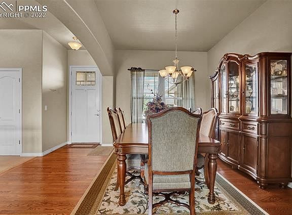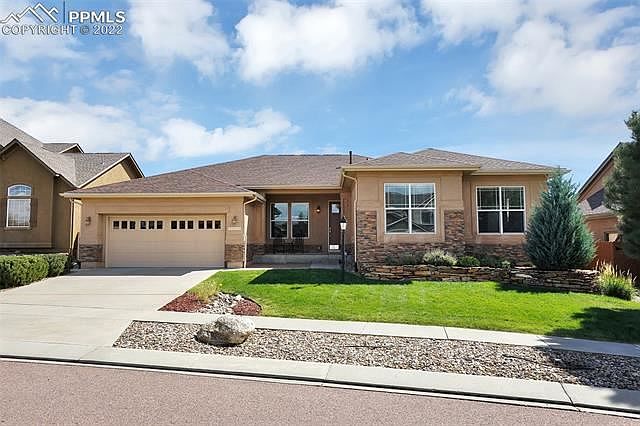 Absolutely spectacular well-designed, 6-Bedrooms plus Office, quality-built Classic Home with charm & character on a quiet cul-de-sac, has been gently used & meticulously maintained by a retired couple. Over 4,600 sf open, light, and bright Ranch floor plan offers comfortable & stylish Main Level living. The gorgeous Main Floor with 10' ceilings & beautiful Oak flooring in the entry has striking architectural design touches & finishes throughout. Elegant formal Dining Room has graceful arches, fabulous & spacious Great Room has an attractive Brick gas Fireplace, TV Alcove, and a Walk-out to a stunning 22' Trex Deck with Pikes Peak View. The gourmet Kitchen with a delightful Breakfast Nook & hardwood flooring is a chef's dream with a Gas Cooktop, Built-in Oven & Microwave, 42" Cabinets, Island, Granite Countertops, GE Profile SS Appliances, and a huge Pantry. Magnificent huge Master Bedroom suite has a superb Spa Bath with Tile Flooring, luxurious Dressing area with Double Vanity, walk-in Shower with custom glass enclosure, 6' Oval Soaking Tub, and an oversized walk-in Closet with aromatic cedar border. The Main Level spacious Laundry Room includes a laundry sink. Enjoy the 2,300 sf great space for entertaining in the Builder Finished exquisite Walk-out Basement with 9' ceiling, an enormous 32'x19' Family Room with a Walk-out to 21' Garden Patio, plus a spacious Rec Room, 3 Large Bedrooms, a wonderful 5-Pc Bathroom, & a large Storage Rm that can be converted into a Theater Room. There is a Beautifully Landscaped 9,477 sf huge lot with Auto Sprinklers, a great place for relaxing or family BBQs. This grand Executive Home is complete with Central Air-Conditioning. Ideally located in Indigo Ranch, only minutes to an overabundance of restaurants, Starbucks, entertainment, & shopping with an easy commute to Peterson, Ft. Carson & Air Force Academy. You would want to be the first to see this exceptional property at an Incredible Price, ready to move in and call it home.