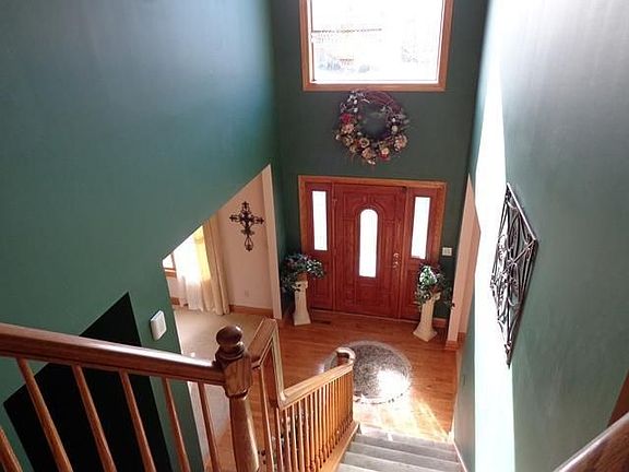 MOTIVATED SELLER! Autumn Creek. 2 story with over 2800 sq. ft. 4 bedrooms and 2.5 baths. Solid oak 6 panel doors and oak trim. Full Brick front and vinyl siding. Foyer has hardwood flooring and Swarovski Chandelier that hangs in front of large window above front door. Perfect Kitchen for entertaining, Island w/breakfast bar, plenty of counter space, hardwood floor, patio doors lead to deck. Formal living room (being used as office) and formal dining room (includes Swarovski Crystal chandelier). Master bedroom with trey ceiling, recessed lighting, master bath with whirlpool tub, separate shower, and walk-in closet. Bathroom floors and vanity sinks are marble. Upstairs balcony overlooks the Great room and fireplace with marble tile surround. The backyard has pool (replaced in 2012), upper and lower deck and concrete patio off the walkout basement. The yard overlooks pond and wooded lot with no homes behind it.
