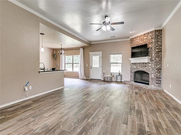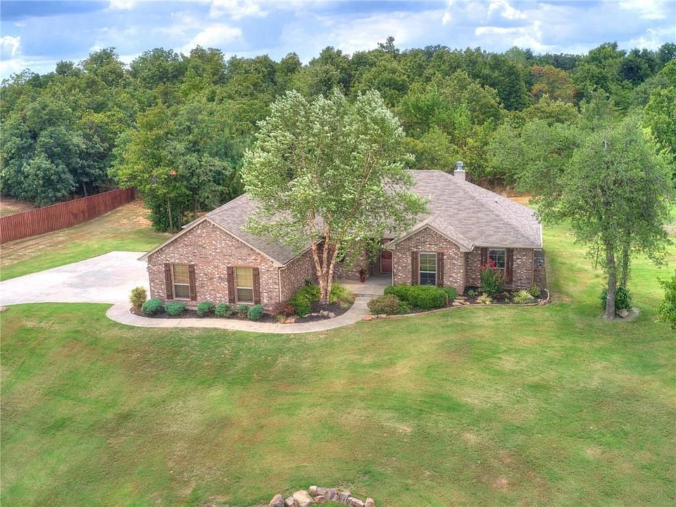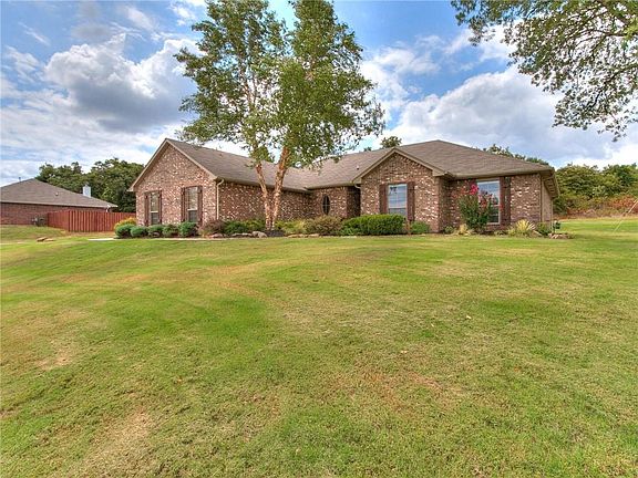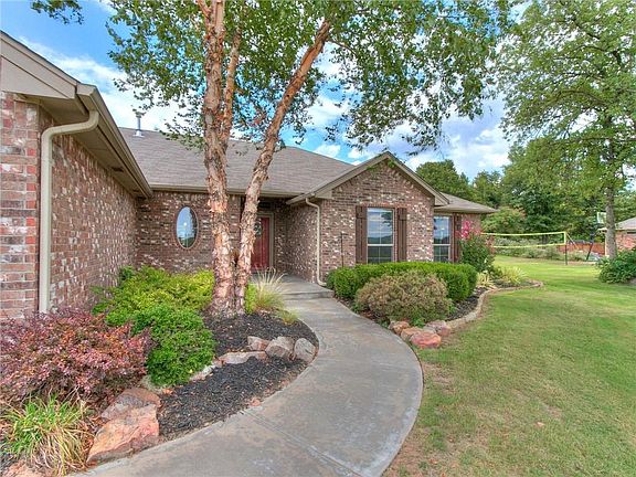 Take a look at this STUNNING 2014 build on 1.2 acres in Choctaw school district! This location is phenomenal, only a few minutes to I-240/I-40 and Tinker. The semi-open concept & wood-like tile throughout the main living areas joins the kitchen & living room beautifully. The kitchen is complete with granite counters, Bosch appliances & painted cabinets. As a true split plan, the primary bed includes a tray ceiling, separate vanities, a tub, shower, plus an amazing closet. Heading to the other side of the home, we find the 3 hall beds. The first, just off the living room would make a lovely study. The hall bath has plenty of counter space and a tiled shower surround. The final bed at the rear of the home feels exceptionally quiet & looks over the backyard. This home features a full sprinkler system, 3 car garage to include an in-ground storm shelter, & a private well & septic. With so many mature trees, this newer neighborhood feels very private and has a fully stocked pond for fishing.