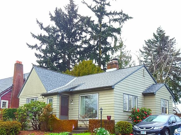 Arbor Lodge Cottage - located two blocks from MAX and Fred Meyer. The home has loads of original charm: coved ceilings, leaded windows, built-in dining room china cabinet plus cabinets in hall and bathroom, hardwood floors in all rooms except kitchen and bathroom, arch between living and dining rooms, handsome granite fireplace in living room. Central air-conditioning and heat. The kitchen has refinished birch cabinets, mosaic tile backsplash, dishwasher, range, refrigerator, microwave and extra portable storage. Updated bathroom with newer handmade tile surround, newer sink, toilet and original tile floor. One-car detached garage with automatic garage door opener, fenced yard, trees and deck in rear. New roof and exterior paint in 2019.