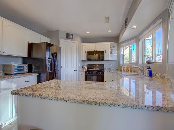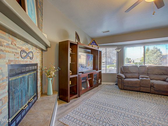 Discover your dream home in the sought-after Viewpoint community! This beautifully remodeled residence boasts a stunning kitchen and bathrooms, featuring elegant granite countertops that elevate the space. Enjoy the natural light pouring in through the bay windows in both the living room and kitchen, creating a warm and inviting atmosphere. Step inside to find stylish LVP flooring and a cozy slate fireplace that adds a touch of sophistication. The brand-new sliding doors seamlessly connect indoor and outdoor living, while the recent upgrades—including a new roof, new water heater, new HVAC system, and fully paid-off solar panels—provide peace of mind and energy efficiency. Second bedroom is complete with a walk-in closet and built-in storage, perfect for organizing your belongings. Outside, immerse yourself in breathtaking mountain views and stunning sunsets from your private oasis, featuring a fire and water feature surrounded by pavers and a charming pergola with retractable shade. The yard is adorned with Arizona cypress and blue ice Arizona cypress trees, adding a unique touch to your outdoor space. The 10x10 shed stays for your convenience. The side yard is equipped with a gate for added privacy and convenience, while the garage offers built-in cabinets, a work bench, and a recirculation pump for instant hot water. Don't miss your opportunity to own this remarkable home that perfectly blends luxury, comfort, and functionality!