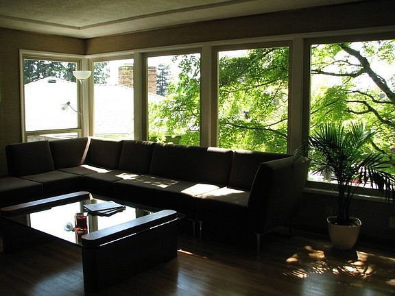 Mt. Tabor Mid-century Split-Entry Ranch with tasteful modern updates! Modern luxury baths; Spacious new gourmet kitchen with copper & butcher block countertops, attached formal and informal dining areas; Rumpus room in finished basement w/ cool original features including: fireplace, wet-bar, vintage cedar paneling & VCT floors! Large laundry/crafts/utility room. Luxurious swimming pool! Lovely Southern view from swanky grass-papered living room. Two car garage! AC!! Quiet Culdesac- Blocks to Tabor Park, trendy Division, Hawthorne & Montavilla!