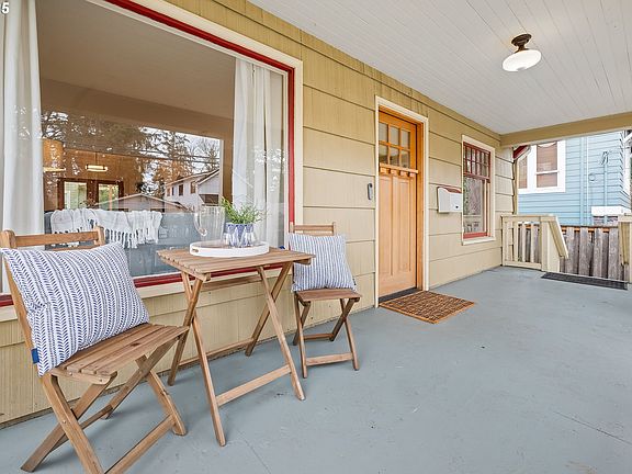 Charming and updated Bungalow Craftsman in Portland’s Multnomah Village. This 1,950 SF home is located just a few short blocks from the heart of “The Village” with 4 bedrooms + Office, 2 full bathrooms and finished basement. A welcoming covered front porch leads into the light and bright living room with natural hardwoods, 9-ft ceilings, and a cozy gas fireplace. The remodeled kitchen features KitchenAid appliances, quartz countertops, a gas range, tile backsplash and tall cabinets. Also on the main floor is the dining room with French doors to the backyard and an office/5th bedroom connecting to a full bathroom. The hardwood floors extend upstairs to 3 additional bedrooms. Downstairs, the finished basement offers a private primary bedroom with a walk-in closet, a family room, full bathroom, laundry, and access to the one-car garage. Both bathrooms feature classic black-and-white tile floors, with dual sinks and a walk-in shower downstairs and a tub/shower combo on the main level. Outdoors, enjoy a fully fenced and flat backyard with large cedar deck and a beautiful willow tree offering shade and privacy. The detached shed is the perfect space for an art studio, greenhouse, or just extra storage. Just a few blocks from the heart of Multnomah Village, this home offers easy access to local shops, cafes, art galleries, and parks—perfect for a walkable lifestyle of morning coffee runs and dinners with friends. Zoned to Maplewood, Jackson, and Ida B. Wells schools. New Roof, Electrical panel, Gas Furnace 2017. [Home Energy Score = 1. HES Report at https://rpt.greenbuildingregistry.com/hes/OR10235468]