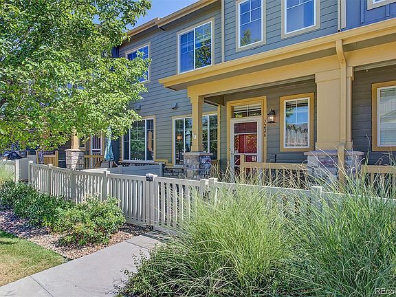 Welcome home to your low maintenance living in the Arvada Shoenberg Farms community! Before entertaining the home be sure to take notice of the fenced front space complete with covered front porch. Upon entering you’ll be greeted by the stunning engineered wood plank flooring that extends throughout the main level in an open level concept. The living room features a cozy gas fireplace and direct access to the large, updated kitchen and dining space. The kitchen features granite slap countertops, stainless appliances and stone tile backsplash. Just off the kitchen is the dining space and a 1/2 bath powder room. Don’t forget the direct access to the attached 2-car garage. Head upstairs and you’ll find the large primary bedroom (19x14) complete with primary bath, double vanity sinks, tub/shower with updated tile, and large walk-in closet. The 2nd upper-level bedroom features it’s own private and attached full bath. This townhome offers true low maintenance living with the HOA covering all exterior maintenance, including roof, irrigation water, trash, recycling, sewer, snow removal, and grounds maintenance. Don’t forget about the owner’s exclusive Shoenberg Farms Park complete with pond! Enjoy the shopping and restaurants minutes from the front door and easy access to I70 to get to Denver or the Rocky Mountains! Don’t wait, schedule your private showing today and see why homes in the Shoenberg Farms community rarely come available!