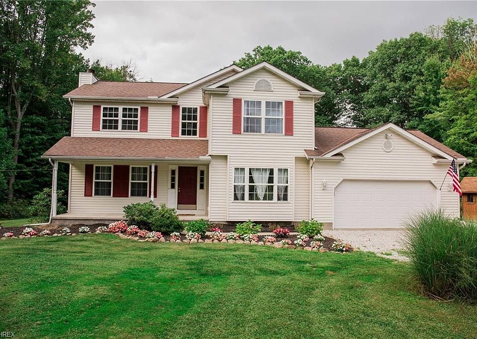 FANTASTIC colonial situated tucked away from the street on over 2 acres of private land! Lots of greenspace & gorgeous landscape await you here. Check out the virtual tour to see it all. Property backs up to private woods & creek. Amazing updates throughout. Oversized kitchen, appliances stay, neutral colors throughout. Sliders to deck with gazebo great for entertaining. First floor has laundry mud room entry from garage, 1/2 bath for guests, large pantry, formal dining room, living room with fireplace and loads of windows with tons of natural light. Front porch large enough to sit and sip coffee on those mornings. Lower level rec. room currently hosting many sports watch parties. No lack of storage with much space and separate utility room. Second floor has large master with master bath, double sinks, and walk in closet. 2 bedrooms share jack and jill bathroom. 2 car attached garage and storage shed.