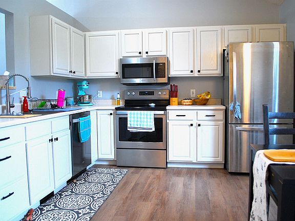 Beautiful home on pretty lot with a wood deck and picturesque backyard fire pit! Well maintained inside and out with freshly painted interior, new flooring, updated kitchen, new appliances, and new light fixtures. The sizable Great Room has a vaulted ceiling and a corner, wood-burning fireplace capable of having a gas-log, as well. The Master Suite has a roomy walk-in closet and the Master Bath has a walk-in shower. All appliances stay including the Washer and Dryer. This is truly a wonderful, move-in ready home!