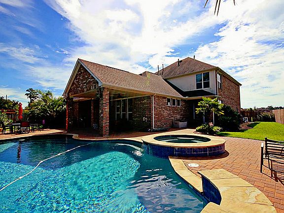 Stunning masterpiece with private backyard oasis. 5 bedrooms, 3 full baths, 2 half baths (one near pool), study, wine cellar, & game room. Elegant finishes throughout! Large island kitchen with loads of storage and counter space. Spacious master bath with corner jetted tub. Lush backyard with custom pool (beach entry & spa) and oversized covered outdoor living area. Ideal location at end of cul-de-sac and next to green space. While in backyard, you can't see neighbors! This one will go fast!
