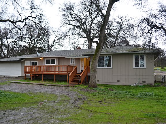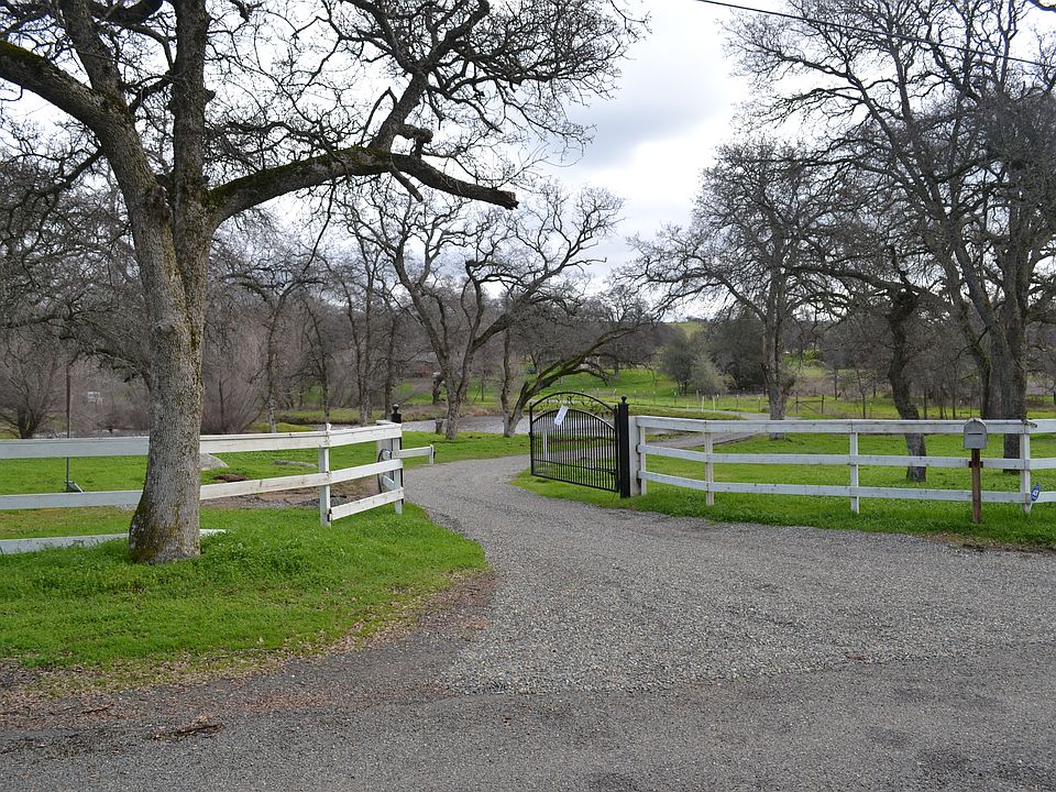 Ranch Style home at the end of the road. Come thru the security gate, past the beautiful ponds, see ahead the comfortable ranch house, under the majestic blue oaks. Completely upgraded, fresh paint, stained trim, new carpet, country kitchen, all new, windows & doors and new front view deck. Usable acreage, includes big red barn, fencing for farm animals, granite rock outcroppings and a garden area, with irrigation water. UTV available to view the property.