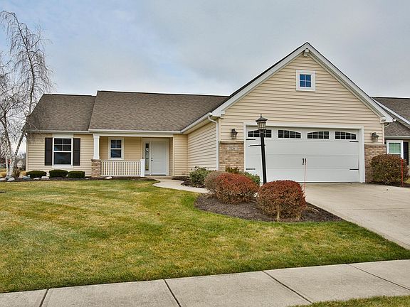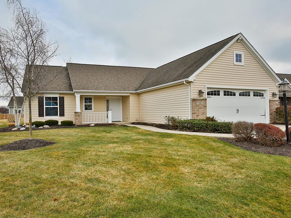 Enjoy maintenance free living in the popular Villas of Valencia. 3-Bedroom split Master suite floor plan. The unique foyer opens into the large vaulted great room with gas log fireplace and plant shelves. A set of large windows allows all the natural light to enter the great room, nook and kitchen. The unique angles of the kitchen offer ample counter space and cabinets. Off the kitchen you will find the enclosed screen porch which opens to an outdoor patio. Separate laundry room, master with vaulted ceiling, walk-in closet, double sink vanity and large stand up shower. The sale includes range/oven, microwave, washer/dryer. The quarterly fees cover, mowing, trimming, lawn fertilizing, weed control, snow removal, and mulching.