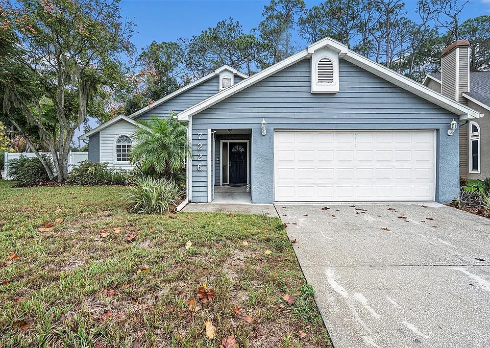 Welcome to this charming home in the fantastic Seven Springs - Mitchell Ranch Area! This three-bedroom, two-bathroom home is a perfect blend of comfort and style. Two car attached garage in the front and for those who appreciate versatility, this home comes complete with a unique feature, an extra single-car garage attached to the lanai with its own second driveway. Whether you use it as a traditional garage or transform it into a hangout space, the possibilities are endless. As you step through the front door, you're greeted by high ceilings and the warm embrace of the living room, where memories are waiting to be made. The living room connects seamlessly to the dining room so the conversation never has to end. From the dining room, take a right and you will be in your kitchen that features ample cabinet and countertop space, a convenient breakfast bar, and stainless steel appliances, making this kitchen both functional and aesthetically pleasing. It's the ideal space for entertaining guests or enjoying a cozy meal with loved ones. The split floor plan ensures privacy and convenience. Down the hall and you'll find the primary bedroom which is a spacious retreat with an attached bathroom for your comfort and convenience. Your primary bathroom features an updated dual sink vanity, newly tiled walk-in shower with glass enclosure, and lots of closet space. There is even a set of sliding glass doors that lead you to the screened-in lanai. The two additional bedrooms are charming, offering ceiling fans and just the right amount of closet space. The guest bathroom also features an updated vanity and newly tiled shower. But the magic doesn't stop there. Upstairs, a delightful loft awaits, providing a versitile space for an office, playroom, or family room. Step through the sliding glass doors in the dining room, and you'll discover your own private oasis, a back screened-in porch. It's the perfect spot to unwind, sip your morning coffee, or host gatherings while enjoying the fantastic Florida weather. And let's not forget the solar panels that not only contribute to a greener lifestyle but also save you money on energy bills! The practical updates continue with a 2016 roof ensuring your home is not only beautiful but also well-maintained. Don't miss the opportunity to make this house your home. Come and experience the perfect blend of modern living and timeless comfort in this Seven Springs - Mitchell Ranch Area gem!