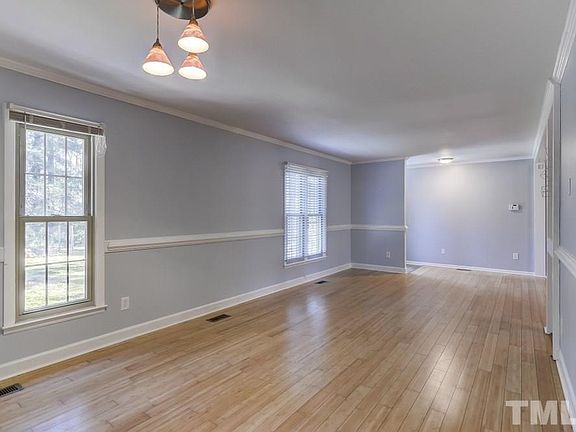 Highly desirable ranch home in prime NW Raleigh location nestled on 1.3 acre wooded lot. Bamboo floors throughout most of home. Large formals. Family room features wood stove & built-ins. Updated kitchen offers granite tops & stainless steel appliances including fridge. Sealed crawl space. Oversized detached 2 car garage/workshop. Fantastic backyard w/ many hardwoods + storage shed & hen house. Conveniently located to RDU, RTP, Brier Creek & I-540.
