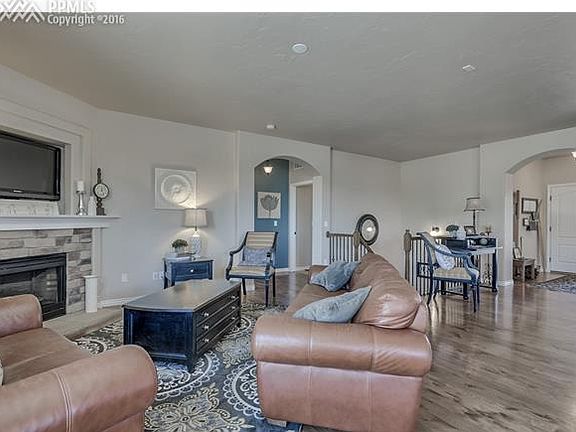 Designer???s Personal home with every UPGRADE possible added to this stucco rancher. Casa Grade Hickory plank hardwood floors throughout entry, family room, dining room and kitchen. Wrought iron railings, oil rubbed bronze fixtures, Cheyenne Door package and hand trowel walls. Gas fireplace with Stone/Dry Mantel fireplace face and Wood Mantel. Gourmet gas kitchen with Carmel Brown Granite counter tops, kitchen full splash and Kohler Undertone kitchen sink. Somerton Hill Square Cherry Spiced Cognac cabinets. Stainless Steel Evergreen Series appliances including Upgraded side by side French door refrigerator. Main level laundry room has Front load Electric and pedestals. Master Suite with French doors, walk in closet, master bath including splash, tile and shower surround and Corian Glacier White master bath counter top with decorative accent. Full finished basement with 9??? ceilings, additional one foot Foundation Walls, surround sound, Honeywell Humidifier, Electronic Air Cleaner, 80% Efficiency Furnace, Custom Blinds, Custom Drapes and Central A/C. 3 car garage with service door, huge oversized extended patio with gas stub and hot tub wire. Convenient to Great Shopping, Theatres, Restaurant and Hiking Trails. ABSOLUTELY GORGEOUS MOVE-IN READY!!