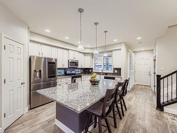 Welcome to 7226 W Evans Ave — a beautifully maintained 4-bedroom, 4-bath Belmar townhome with 2596 finished sq ft in one of Lakewood’s most desirable communities. Built in 2018 and backing to peaceful green space, this nearly new home features an open-concept main level with a chef’s kitchen boasting granite countertops, gas range, stainless appliances, large island, and walk-in pantry. Upstairs offers a spacious primary suite with vaulted ceilings, dual vanities and walk-in shower, an additional primary suite with a full bath with shower, an office or 3rd bedroom, and convenient laundry. The finished basement includes a private studio, full bath with soaking tub, and ample storage, which makes it a perfect guest or mother-in-law suite. Enjoy a private patio, two-car garage with ample built in storage, hot tub, fire pit, community pool, lake access, and walking trails—all close to shops, dining, and commuter routes.