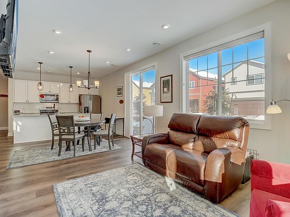 Beautiful and light-filled end unit detached townhome in the Cottages at the COR community of Ramsey! A covered front porch welcomes you into the main floor of this home which features a sunny open floor plan great for everyday living and entertaining. A fireplace in the living room offers a cozy place to relax, and leads directly into the dining space and high-end kitchen. The kitchen boasts stainless steel appliances, granite countertops, and chic cabinetry with under-cabinet lighting. The main floor half bathroom and mud room space with access to the attached garage ensure everyday convenience! Upstairs, a loft space offers additional living space with endless potential. All three bedrooms are conveniently located on the upper floor, including the primary bedroom with tray ceilings, a walk-in closet, and a private en-suite bathroom accessed through a sliding barn door. Numerous upgrades include Nest security system, custom window coverings, furnace humidifer, and Google thermostat.