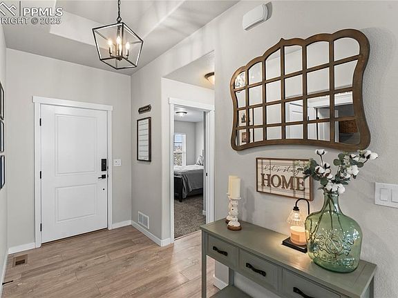 Beautiful 4-Bedroom Home on Spacious Corner Lot in Banning Lewis Ranch! Welcome to this stunning 4-bedroom, 3-bathroom home nestled on a desirable corner lot in the sought-after community of Banning Lewis Ranch. With a spacious and functional layout, this home offers comfort, style, and modern living at its best. Step inside to find an open-concept floor plan with high ceilings, abundant natural light, and tasteful finishes throughout. The gourmet kitchen features beautiful countertops, stainless steel appliances, a large island with seating, and a walk-in pantry—perfect for entertaining or family meals. The adjoining dining and living areas flow seamlessly, creating a warm and inviting space for everyday living. The main-level master bedroom and full bath offer flexible living options. Upstairs, the expansive primary suite boasts a walk-in closet and a private en-suite bath with dual sinks and a walk-in shower. One additional bedroom in the front of the home and two additional bedrooms and a full bath provide plenty of space for the whole family. Enjoy Colorado’s beautiful weather from your private backyard, complete with a patio perfect for relaxing or hosting barbecues. The corner lot adds extra space and privacy, along with great curb appeal. Located in the master-planned Banning Lewis Ranch community, you'll have access to top-rated schools, multiple parks, walking trails, a community center, pool, fitness center, and more! Don't miss this opportunity to own a beautiful home in one of Colorado Springs’ most vibrant communities. Schedule your tour today!