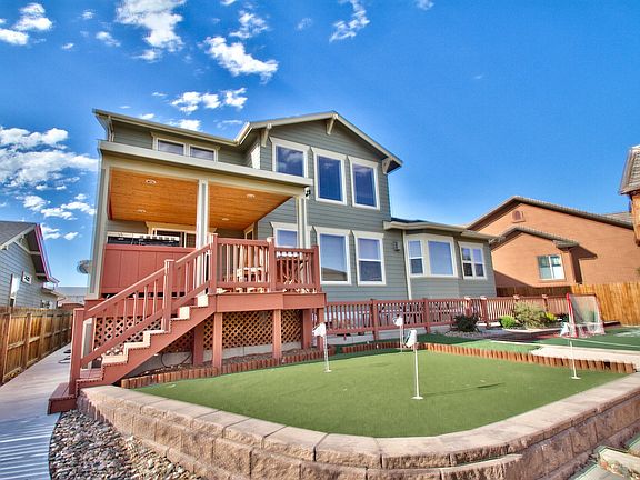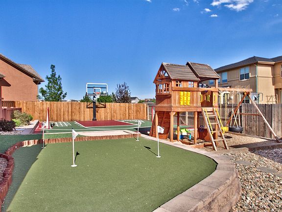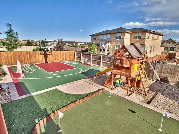 This gorgeous custom built home on a quiet upscale cul-de-sac is a family dream! Elegant landscaping, upgraded features and charm abound in this home! The three car garage with carriage door style hardware is turned sideways with an oversized driveway for ease of use. This house is fully finished with a clever floor plan. A totally custom and fully fenced backyard sports recreational features rarely seen today. A full sized play house area sits next to a very large14x14 composite deck with full cover and a 12x56 concrete patio for all types of outdoor recreation. Next, we have a putting green and a high end custom sport court that accommodates soccer, basketball , shuffle board and hopscotch. The sport court is covered in kid’s playground safety tile over a level concrete slab. A fire hydrant sits at the front corner of the lot and a brand new fire station is just one block away. Automatic sprinklers and a paved walkway surround the house. Sellers are Motivated! Features: •6 panel solid fir wood doors •Stained trim package in medium oak •Rounded corners •Extended hardwood entry and dining room •Thick, immaculate carpets in living areas and bedrooms •Bay window in master bedroom •Large eat in Kitchen with cook top island •Double ovens, under mount double sided sink, quartz counters •Full diamond pattern tile kitchen back splash •Multiple recessed ceiling lights •Kitchen desk •42” Hickory upper cabinets with crown caps •Pull out shelves in lower kitchen cabinets •GE Profile stainless steel appliances •Large corner pantry •Bathrooms and laundry room have Corian counters •Wrought iron stair ballisters •Tile surround fireplace •Entertainment center built-ins in living room and basement family room •Pedestal sink in powder room •Laundry/Mud Room floor drain •2 large main floor closets •All grout throughout the house is epoxy for no maintenance •Master Bedroom has a circular entry nook and bay window •High outlets in master bedroom allow for wall mounting television while keeping cords tucked away •Frameless master shower allows in lots of natural light •Oversize oval tub •Double master closets •Window in large master closet •French doors lead to master sitting room/office/exercise room with floor to ceiling windows, off the master bathroom •Large upper floor closet with double doors •Bedroom 2 with full bath ensuite •Bonus room on upper floor is great for exercise gym, kid’s play room, home office •Basement has three large bedrooms with walk in closets •Full bath in basement with linen closet •Wired for 7.1 Dolby Digital Surround Sound •Wet bar with refrigerator seats 5 comfortably •Lots of recessed ceiling lights give a bright, open feel to the basement •Security grates over outdoor window wells •Digital heat and air control panels •Extra carbon monoxide/fire detectors for added safety