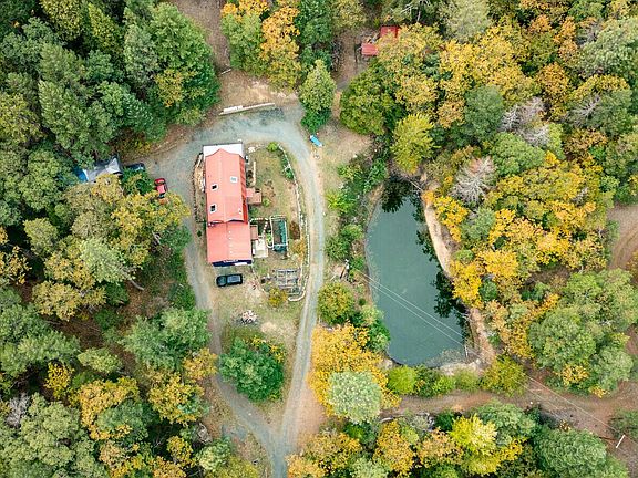 Lovingly maintained home on over 11 acres of privacy and trails with a year round pond. Uniquely styled home, the kitchen is spacious with plenty of storage, while the living room has a toasty woodstove and lots of natural light. There is a main level room that is currently used as a master bedroom but could be a family room. This room is quite large with french doors, 2 closets and a small deck. There is a master suite upstairs with vaulted ceilings, big windows, a loft and spacious master bathroom with an oversized soaking tub and built-ins. The second room upstairs has a very large deck to enjoy the views and sunshine. There are updates throughout the home, such as new heat and air, windows, appliances and electrical. Gigantic storage space beneath the home that could be finished for a bonus room, pottery or art studio, woodworking or so much more. Very large poultry coop that could be split or built out. Lots of privacy, trees and wildlife with a year-round pond!