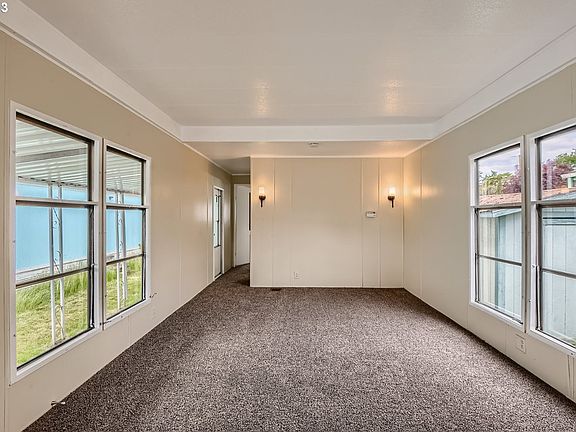 This 1 bedroom, 1 bath single-wide manufactured home is located in Rudiger's Mobile Home Park, an all-age community. Covered front patio. Enter into living room w/large windows filling the space with natural light. Kitchen includes range, refrigerator and eating area. New carpet in living room and bedroom. Wall A/C and outdoor shed included. Enjoy the many nearby amenities including parks, shopping, restaurants + more! Monthly space rent of $725 includes garbage. All adults must apply with park. Shared laundry room + secured/locking mailboxes in park.