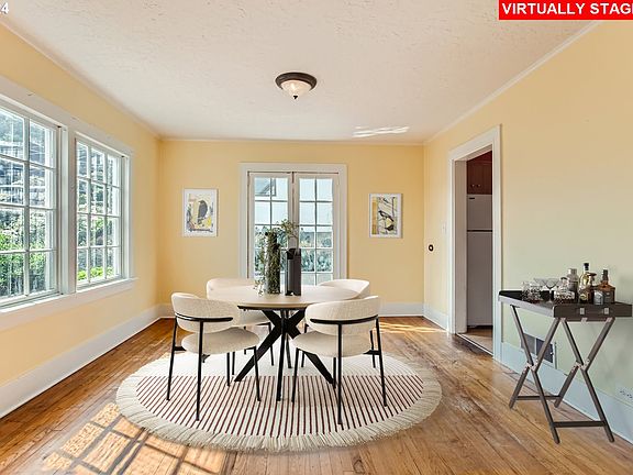 An absolute 'doll house' just waiting for new owners to 'dress her up' Newer vinyl windows, original floors will shine once refinished! Two bedrooms up, another bedroom with legal egress in lower level with bath and bonus room, possible ADU. Charm abounds with paned windows, french doors, hardwood floors. Detached garage, and fenced yard with gracious weeping willow. Room to expand, and views of Mt Hood and Cascades, at the foot of Mt Tabor. A dream!