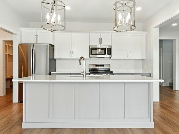 Spacious back patioSleek stone countertopsCovered front porchWalk-in pantryFunctional laundry room