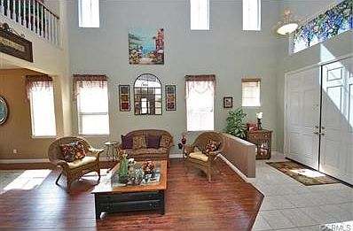 Gorgeous pool & spa home by DR Horton features an open, airy floor plan under a soaring 2-story ceiling with a loft plus 1 bedroom on the first floor. This home has a total of 5 bedrooms, each one with its own walk-in closet! Enjoy the formal living room with wood laminate flooring, the separate formal dining room, and a spacious family room with a raised hearth fireplace. The family room opens to a large kitchen featuring a sunny breakfast nook, long breakfast bar, double ovens & lots of pantry space. There are double doors at the entryway & also the master suite ? it offers a walk-in closet, separate shower, soaking tub & vanity with dual sinks. Bedrooms are of a generous size, & the secondary bathroom upstairs also has dual sinks. The indoor laundry room more storage space, a sink & access to the side yard. Enjoy the pool & spa with pebble finish, patio area, lawn & flowering plants. There is also a storage shed, mountain view, 2-car garage & tile roof. Located near the winery, shops, restaurants, schools, parks & transportation.