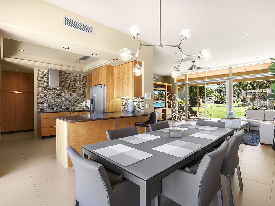 Stunning Sandpiper condo with amazing renovations throughout. 1,826 square foot, 2 bedroom / 2 bath condo with private patio features a large open floor plan with high ceilings with the living, dining and kitchen areas flowing into one another, and out to both patios making for a bright and spacious feeling for easy living and effortless entertaining! Unit features numerous upgrades: custom cabinetry and built-ins, dual-pane sliders and windows (except in guest BR), remote controlled blinds, quartz countertops, and beautiful tiling throughout unit, extending seamlessly out onto both patios. Kitchen features custom cabinetry and stainless steel appliances and bathrooms include frameless glass shower enclosures with master bath including indoor laundry. Enjoy those beautiful desert evenings under the stars with your fire pit/table on your private patio or lounge in the sun on your poolside patio with your resort like view of the mountains, green space and pool area of Sandpiper circle 15. The fully enclosed garage space is conveniently located at the front door of the unit and has been upgraded with epoxy flooring and features a temperature control option during the hot summer months. The condo is being sold partially furnished as per inventory. Unit is conveniently located within minutes walk to hiking trails, high end shopping and dining on El Paseo.