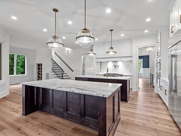 POOL LOT!! DOUBLE MASTERS! 3RD FLOOR WALK UP ATTIC! 1ST FLOOR GUEST SUITE/STUDY! 4 CAR GARAGE! Hardwoods Through Main Living! Kitchen: Quartz Countertops, Custom Painted Cabinets w/Crown Trim, White Tile Backsplash, Custom Stained Double Island w/Breakfast Bar & Globe Pendant Lights, GE Monogram SS Appliances, Bulter's Pantry & Scullery! Master: w/Hardwoods & Custom Diamond Tray Ceiling! MBath: Separate Vanities w/Quartz, Huge Spa Tiled Shower w/Zero Entry, Rainfall Head & Freestanding Tub, Walk in Closet w/Private Access to Laundry Room! Family Room: Vaulted Ceiling w/Beam Detail, Stone Surround Gas Log Fireplace w/Trim Detail & Custom Built Ins, Designer Chandelier & Slider to Rear Covered Porch w/Fireplace! Upstairs Recreational Room & Unfinished Storage Area!