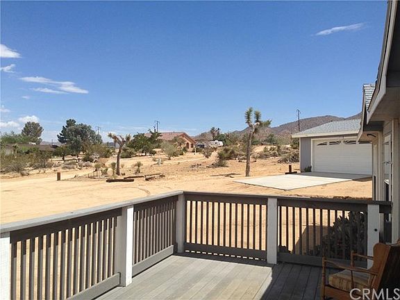 Large updated home on over 1 acre in scenic Joshua Tree! This home features over 1900 sq. ft. of living space. Large home that has fenced rear yard, separate 2 car garage, and large deck on front of house to enjoy morning coffee and those incredible unobstructed desert views. Home was recently updated with new interior paint and carpet. The interior features HUGE master bedroom with dual walk in closets, and a large ensuite with his and her sinks, and a full size walk in shower, and large oval soaking tub. The home has central HVAC system, and also a wood burning stove for the cold winter nights. Nestled on a quiet road with not too many neighbors, this could be the perfect place to call home. Turn key ready to set your furniture down and enjoy.