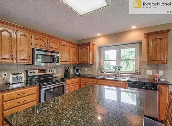 BEAUTIFUL FAMILY HOME W/MANY EXTRAS! KITCHEN BOASTS AMPLE CABINET SPACE, HARDWOOD FLOORS, STAINLESS APPLIANCES-GRANITE COUNTERTOPS & ISLAND W/BRKFST BAR-A BUILT-IN DESK. LOWER LEVEL HAS FAMILY ROOM W/ 2ND FIREPLACE & FULL BATH. MASTER BATH HAS CERAMIC TILE, DOUBLE SINKS & WHIRLPOOL TUB. ENJOY THE VIEW OF YOUR LARGE BCKYD FROM THE DECK OR WALKOUT FROM LOWER LEVEL TO PATIO. LARGE LANDSCAPED LOT, & A STORAGE SHED. NOTE**GOOGLE FIBER HERE**LARGE ROOM SIZES & ALL BEDROOMS HAVE WALK-IN CLOSETS.