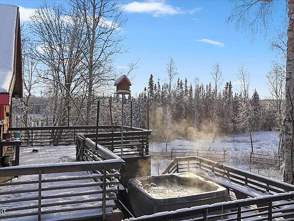 Beautiful 10-acre property in the Mat-Su Valley offering privacy and true Alaska living! Features include a paddock, greenhouse, garden, detached garage, and multi-level decking with hot tub. Inside boasts warm wood detail, large windows, a spacious kitchen, and a finished basement with large bath and bonus rooms. Enjoy privacy, functionality, and Alaskan charm all in one