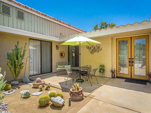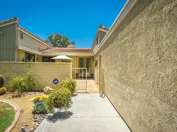 A well loved home is a treasure to find. This great Rancho Mirage condo is one of those. There is thoughtful design, a good floor plan and all the right updates. This is the largest plan in Wilshire Palms with 3 Bedrooms and 3 bathrooms, massive living room and an attached garage. The location of the condo at the back of the complex means views and peace and quiet. Single level living with updated baths and kitchen, windows and sliders have been replaced, a laundry room built out, Built-in storage is everywhere. You will quickly realize they don't make em like this anymore! Expansive patios front and back will help you enjoy the outdoor living so popular in the Desert. Access to the greenbelt leads you to the conveniently placed pool, spas and Tennis courts. This home comes furnished with virtually all of the contents you see in the photos. Move right in and enjoy all the comforts of your new desert home. Finally, don't overlook the Stellar location in the heart of the Coachella valley. You are just minutes from everything you want to do in the Desert.