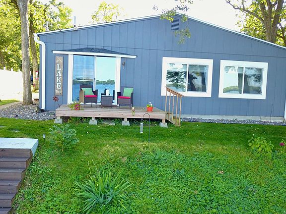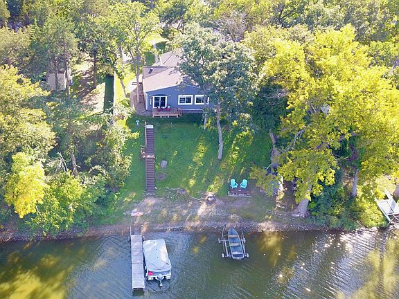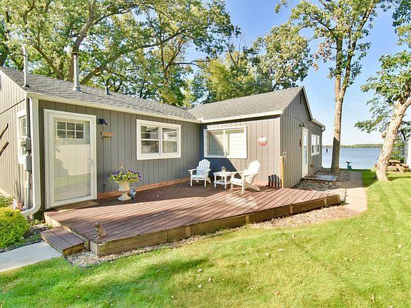 Escape to your own private haven with this beautiful lakefront home, perfect for relaxation with year-round living. You will appreciate the perfect blend of rustic charm and modern luxury in this completely renovated home nestled on Elk Lake. Recent updates include a newer roof, a high efficiency heating system, gutters, exterior paint, & new asphalt on the two driveways. This charming home has 2 large bedrooms including a WI closet & big windows overlooking the lake in the primary bedroom. Also includes a MF laundry room, barn doors, a bonus sitting room or office, & a big inviting living room w/ a tongue & groove ceiling. The elegant kitchen features custom cabinets, stylish backsplash tile, ample storage, stainless steel appliances, & an island. The lower level has lots of storage & room for expanded living area. Great outdoor living perfect for entertaining with panoramic views from your lakeside deck, 2 fire pits, or spacious patio. Elk Lake is known for incredible sunsets, fishing, & swimming at the sandbar. There's even a big 2-stall garage & extra parking for your guests or boat. Do not miss out on this one!