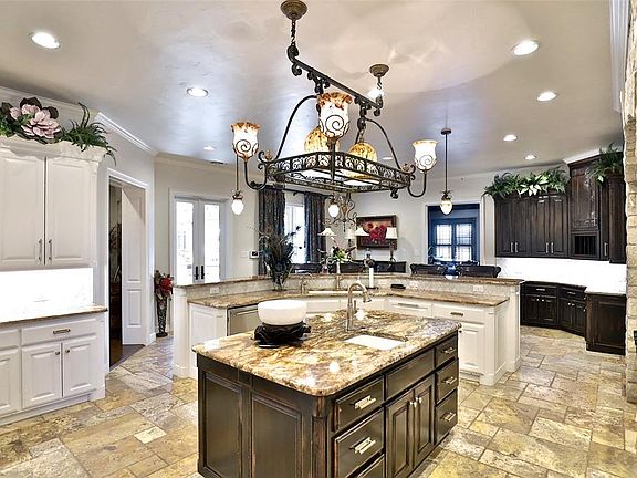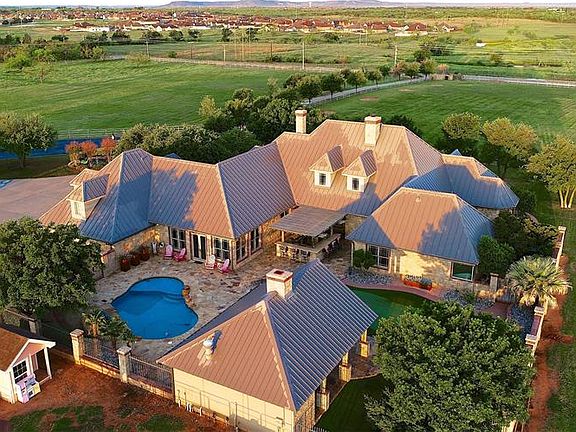 Executive property situated on 9.7 acres features a main house and a large shop with living quarters. The estate has been meticulously manicured and boasts a wide array of features. In main house 5 bedrooms, 6 full bathrooms, chef's kitchen, large upstairs living area, cigar room, formal dining, library, media room, game room overlooking with wet bar overlooking heated pool and spa, outdoor living area with bath house, putting green, full outdoor kitchen area, 3 car garage. Rocked shop at estimated 4,000 square feet per CAD is complete with a total of 7 bay doors, full workout room, basketball court, bedroom, full bath, kitchenette. Surrounded by asphalt on all sides for extra parking of large toys.